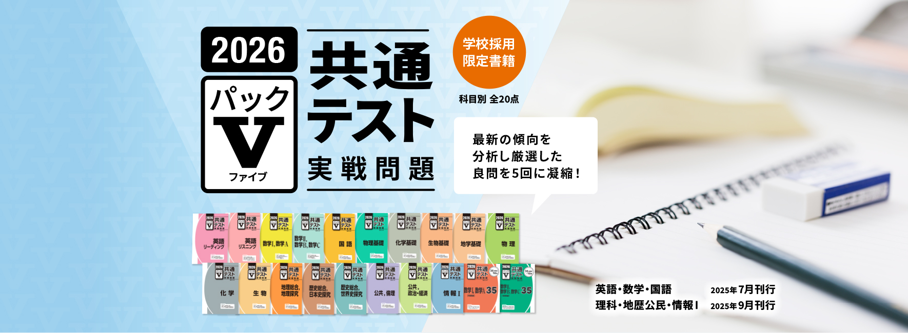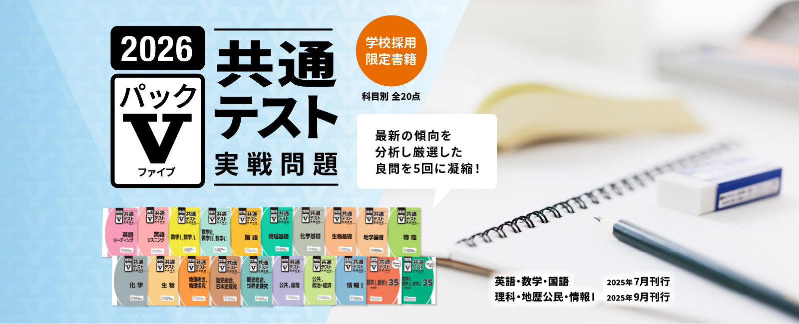 2026年度版パックⅤではこれまでの共通テストおよび2025年1月に実施された新たな共通テストを徹底的に分析し、5回分のオリジナル問題を収録することにより、共通テストで問われる要素を幅広くカバーし、どのような出題がなされても対応できる力を身につけられるよう編纂しました。