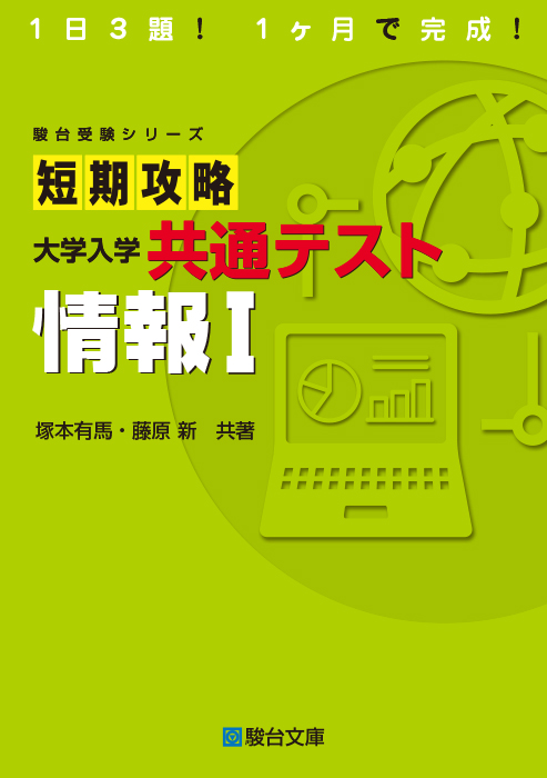 問題ごとに標準所要時間と難易度(★印で3段階表記)を付してあるので,無理なく計画を立てることにより,1か月程度で共通テスト「情報Ⅰ」の全範囲を完全攻略することができます。